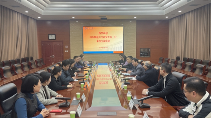山东师大研究生院一行在聊城大学进行了参观,并与聊城大学研究生处进行座谈交流。聊城大学研究生处处长唐明贵、山东师范大学研究生院副院长陈蓁蓁分别介绍了两校研究生教育的整体情况和亮点举措。大家深切回顾了两校深厚的办学渊源,希望两校加强交流和沟通,增进彼此间的友情与合作,并就研究生教育如何更好服务地方经济社会发展、突出办学特色等问题展开了深入交流。