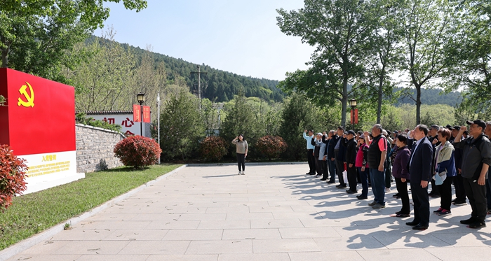 老一辈共产党人不畏牺牲的忘我精神和执着的革命信仰鼓舞和感染着在场的每一位党员。在大峰山党性教育基地初心广场,全体党员重温入党誓词,始终牢记党员身份、不忘入党铮铮誓言。