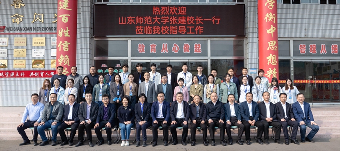 4月9日,山东师范大学校长张建带队到微山县第二中学看望教育实习学生。微山县委副书记、县长郭鑫,县委常委、副县长吴雷,副县长蒋红星,县教体局党组书记、局长王卫华;山东师范大学校长办公室、教务处、合作发展处、资产与实验室管理处、东营研究院相关负责同志参加活动。