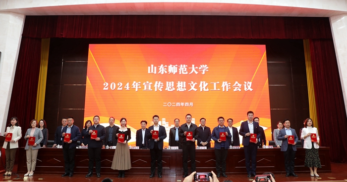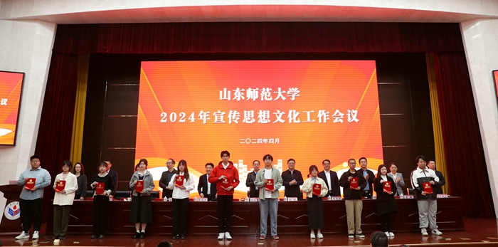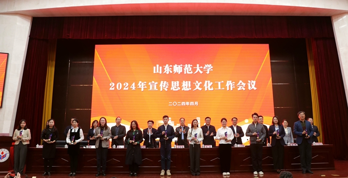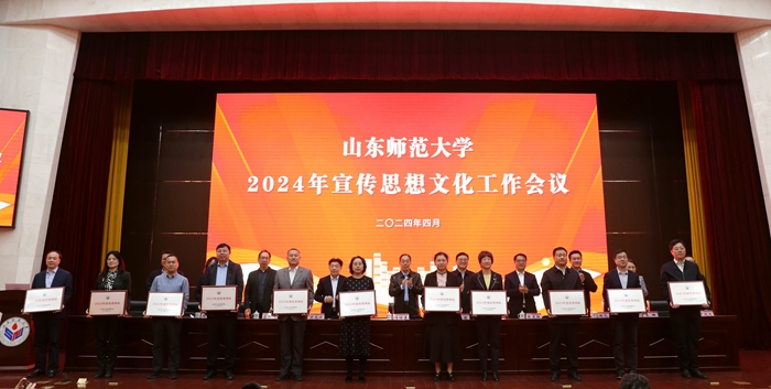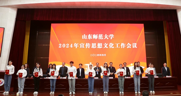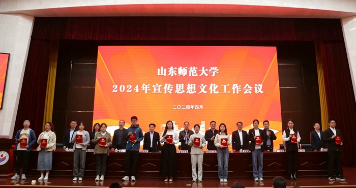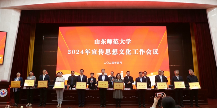 与会学校领导为获得新媒体工作先进个人,优秀新媒体作品,《山东师大报》十佳学生记者、通讯员,宣传思想文化工作先进个人,优秀新媒体,优秀二级网站和宣传思想文化工作先进单位代表颁奖。