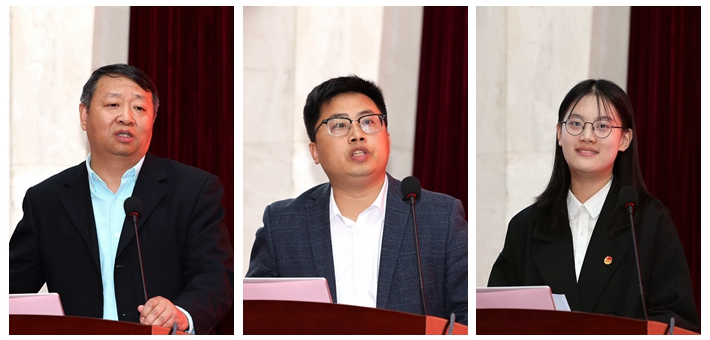 教务处处长乔翠霞、国际交流与合作处处长周连勇、历史文化学院党委书记刘新生、物理与电子科学学院党委书记谢德仁、马克思主义学院团委书记李志亮及校学生会执行主席刘懿慧同学分别作大会交流发言,结合各自工作实际从不同角度分享了从事宣传思想文化工作的做法、经验与体会。