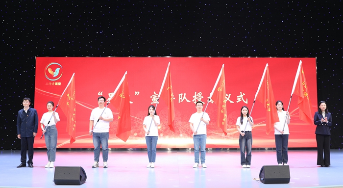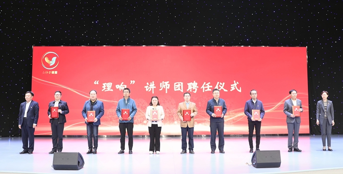 活动现场,与会领导共同启动“金种子”课堂,并为“理响”讲师团金牌讲师颁发聘书,为“星火”宣讲队学子宣讲队授旗。