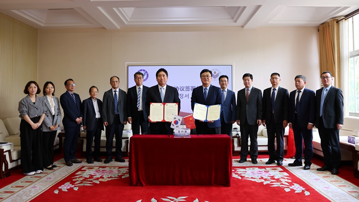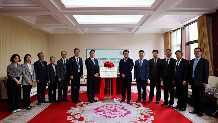 会谈期间,张建和朴鲁俊代表学校共同签署两校教师交流协议和共同设立中韩商业文化研究院合作协议,并为研究院举行揭牌。