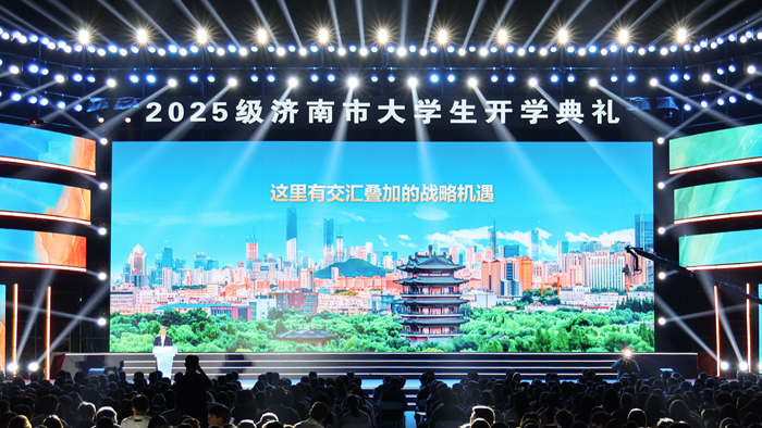 9月25日晚,“开学 筑梦在泉城”2025级济南市大学生开学典礼在山东师范大学长清湖校区举行。济南市委副书记、市长于海田,山东师范大学党委书记冯继康、校长张建出席会议。济南市委常委、统战部部长张勇强,济南市政府秘书长续明,山东财经大学党委书记查玉喜,省直有关部门、部分驻济高校负责同志,企业、驻济高校2025级新生代表等参加活动。