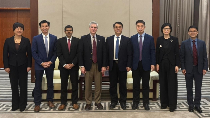 张茂聪充分肯定了两校紧密合作取得的丰硕成果,对密苏里州立大学重视两校友好交流合作表示赞赏,认为与密苏里州立大学的务实合作是学校国际化发展的重要内容,两校近年在数学领域创新开展本科生联合培养取得显著成效,希望两校进一步拓展思路、共同探索有效合作机制,在数据科学、人工智能等前沿领域深入开展联合培养、教师交流、联合学术发表等合作,为双方友好交往谱写新篇。