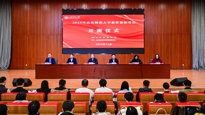 12月4日,学校在长清湖校区举办2025年度新聘教师培训班开班式。校党委书记冯继康、党委副书记万光侠,纪委书记、省纪委监委驻学校纪检监察组组长袁荣开,副校长李晓迪,党委常委、统战部部长李梦遥,老教师代表、省教书育人楷模、齐鲁最美教师、文学院教授李宗刚出席仪式。2024年9月以来新聘教师、各教学科研单位主要负责同志参加仪式。副校长周珊珊主持仪式。