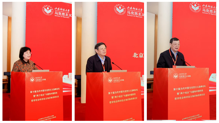12月14日,第十届当代中国马克思主义高峰论坛暨“两个结合”与建构中国特色哲学社会科学自主知识体系研讨会在济南举行。山东省政协党组成员、山东省社科联主席唐洲雁,山东省教育厅总督学王志刚,山东师范大学党委书记冯继康,山东师范大学原党委书记、山东省高校当代中国马克思主义研究院院长商志晓出席会议。来自北京大学、清华大学、中国人民大学、复旦大学、山东大学、山东师范大学等80多所高校、社科院、党校的专家学者及学生200余人参加会议。开幕式由山东师范大学马克思主义学院院长王增福主持。