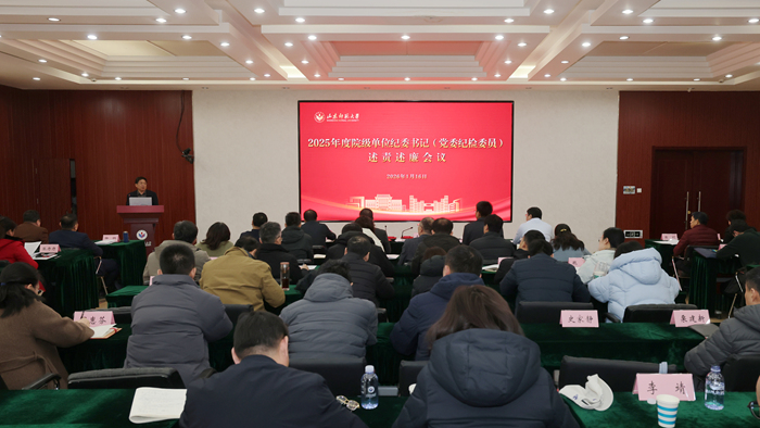 1月16日上午,学校2025年度院级单位纪委书记(党委纪检委员)述责述廉会议在千佛山校区文化楼四层会议厅召开。省纪委监委驻学校纪检监察组组长、学校纪委书记袁荣开出席会议并讲话。学校纪委委员,各院级单位纪委书记、纪委委员,院级单位党委纪检委员及全体专职纪检监察干部参加会议。会议由学校纪委副书记王发科主持。
