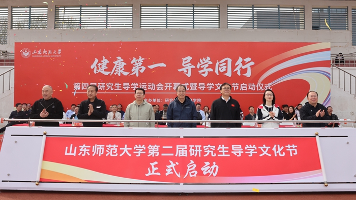 3月26日下午,山东师范大学“健康第一 导学同行”第四届研究生导学运动会开幕式暨导学文化节启动仪式在长清湖校区田径场举行。校党委书记冯继康,校长张建,党委常委、宣传部部长于晓明,党委常委、统战部部长李梦遥出席开幕式。学校有关部门负责同志、各研究生培养单位、全体参赛导师和研究生等1300余人参加开幕式。开幕式由研究生院副院长陈蓁蓁主持。